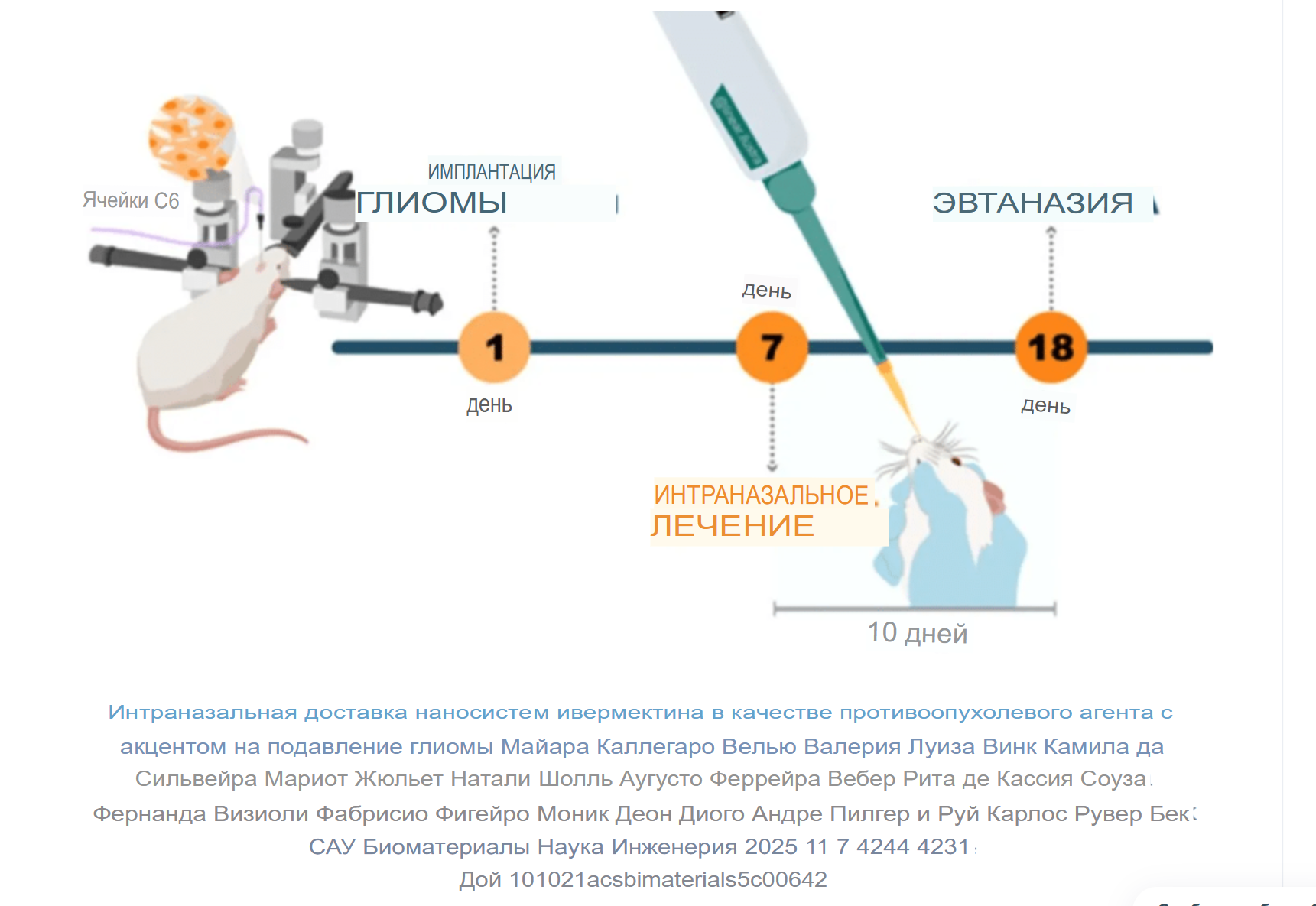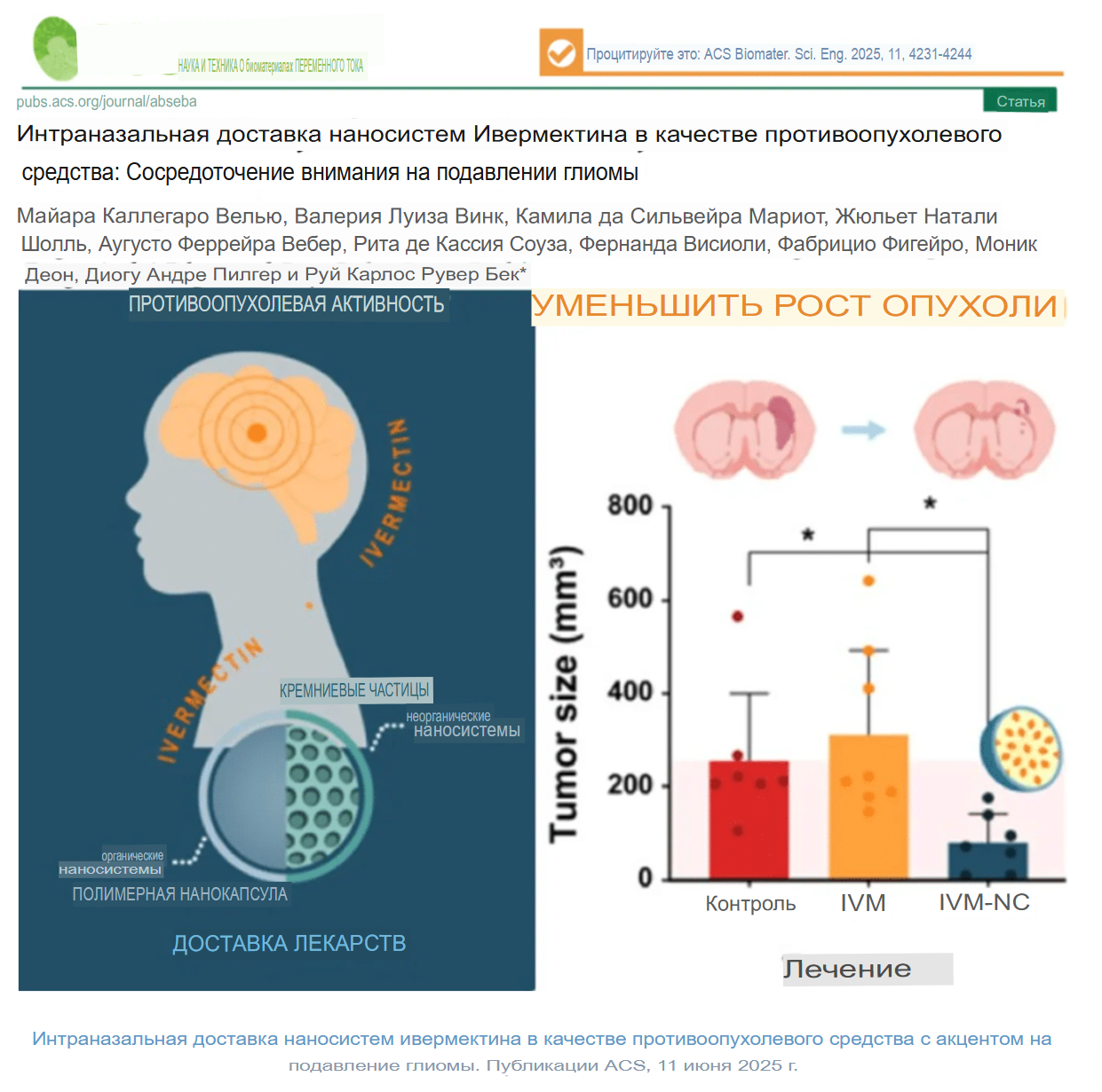Интраназальная доставка наносистем ивермектина в качестве противоопухолевого средства с акцентом на подавление глиомы. Публикации ACS, 11 июня 2025 г.